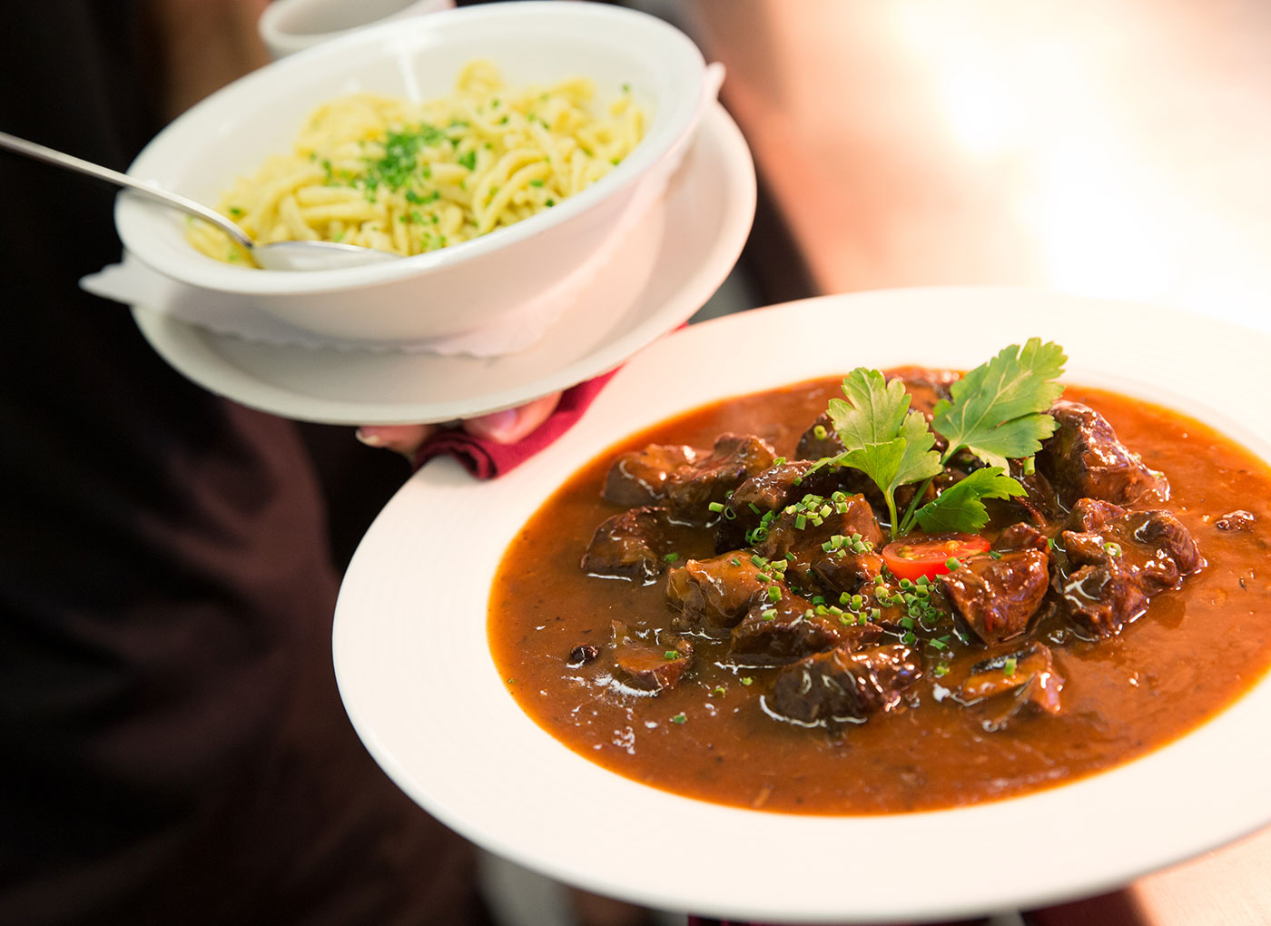 Gastlichkeit und Service werden bei uns groß geschrieben, damit es unseren Gästen an nichts fehlt. In unserem Haus mit Tradition steht unser Leitsatz „Bewährtes pflegen und harmonisch mit Neuem verbinden“ stets im Mittelpunkt unseres Handelns.