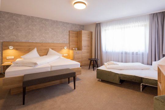 Our triple and family rooms or adjoining double rooms with a connecting door offer space for 4 to 5 people and are ideal for anyone travelling with children or as a group. Travel cots can be provided on request.